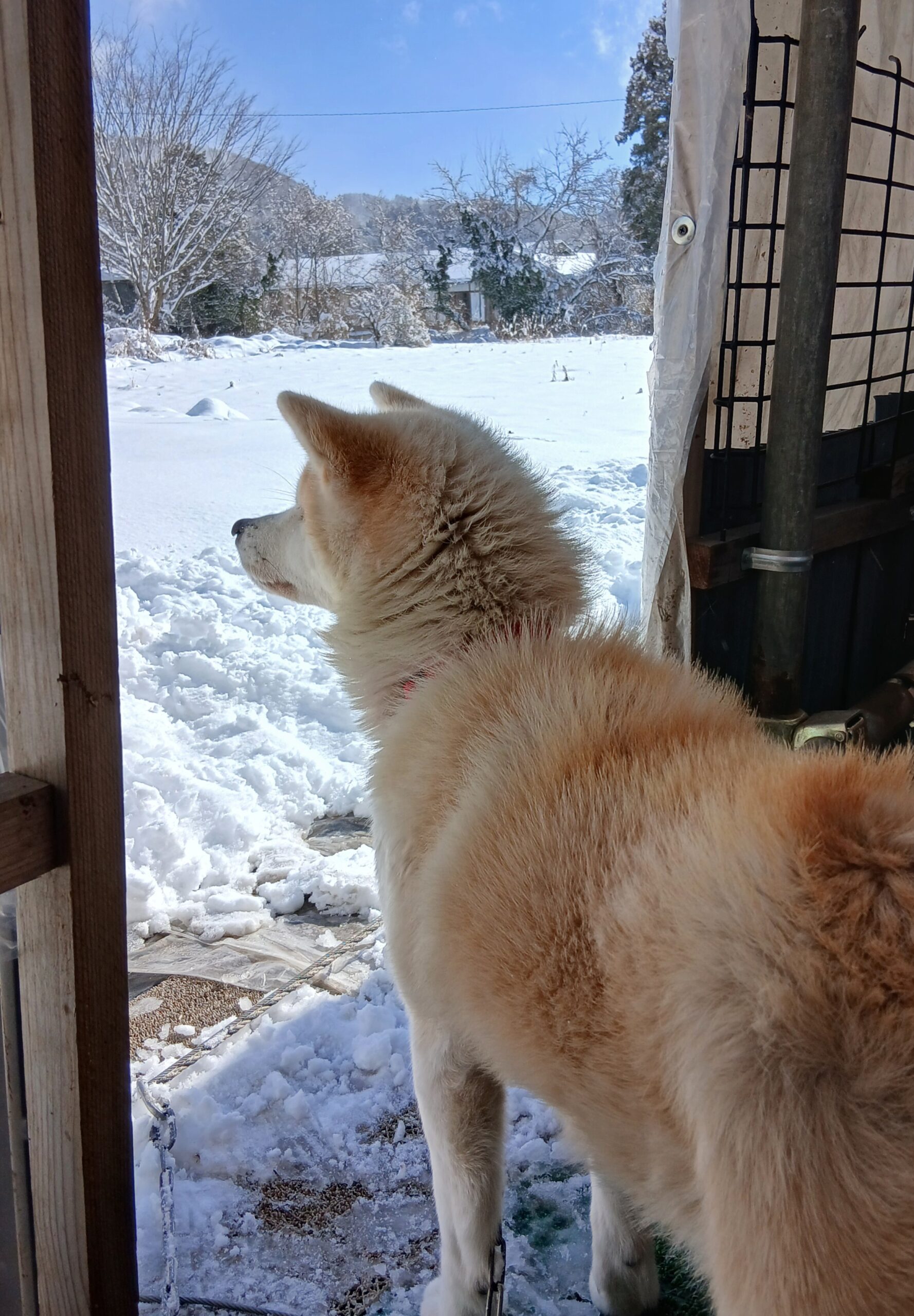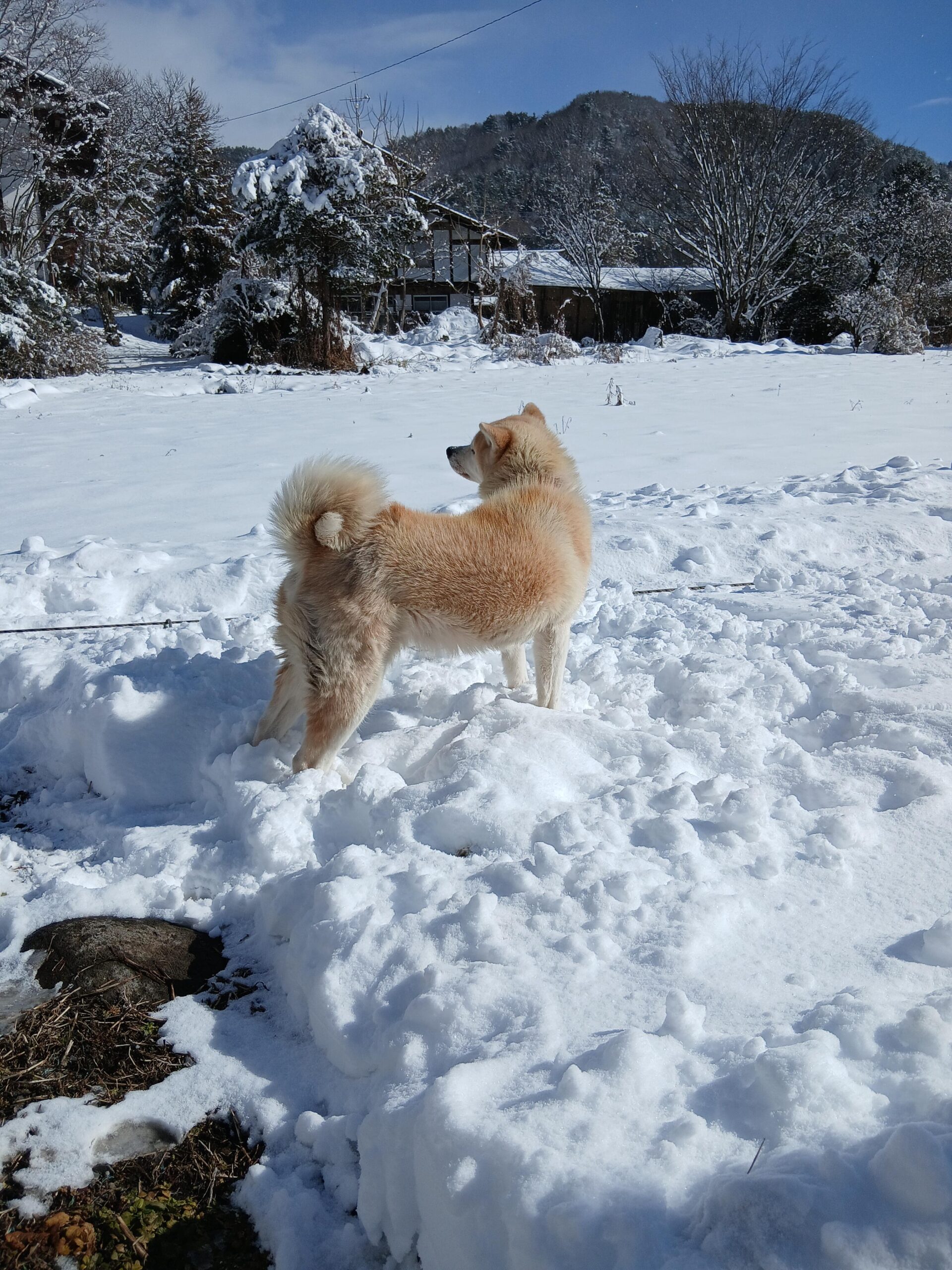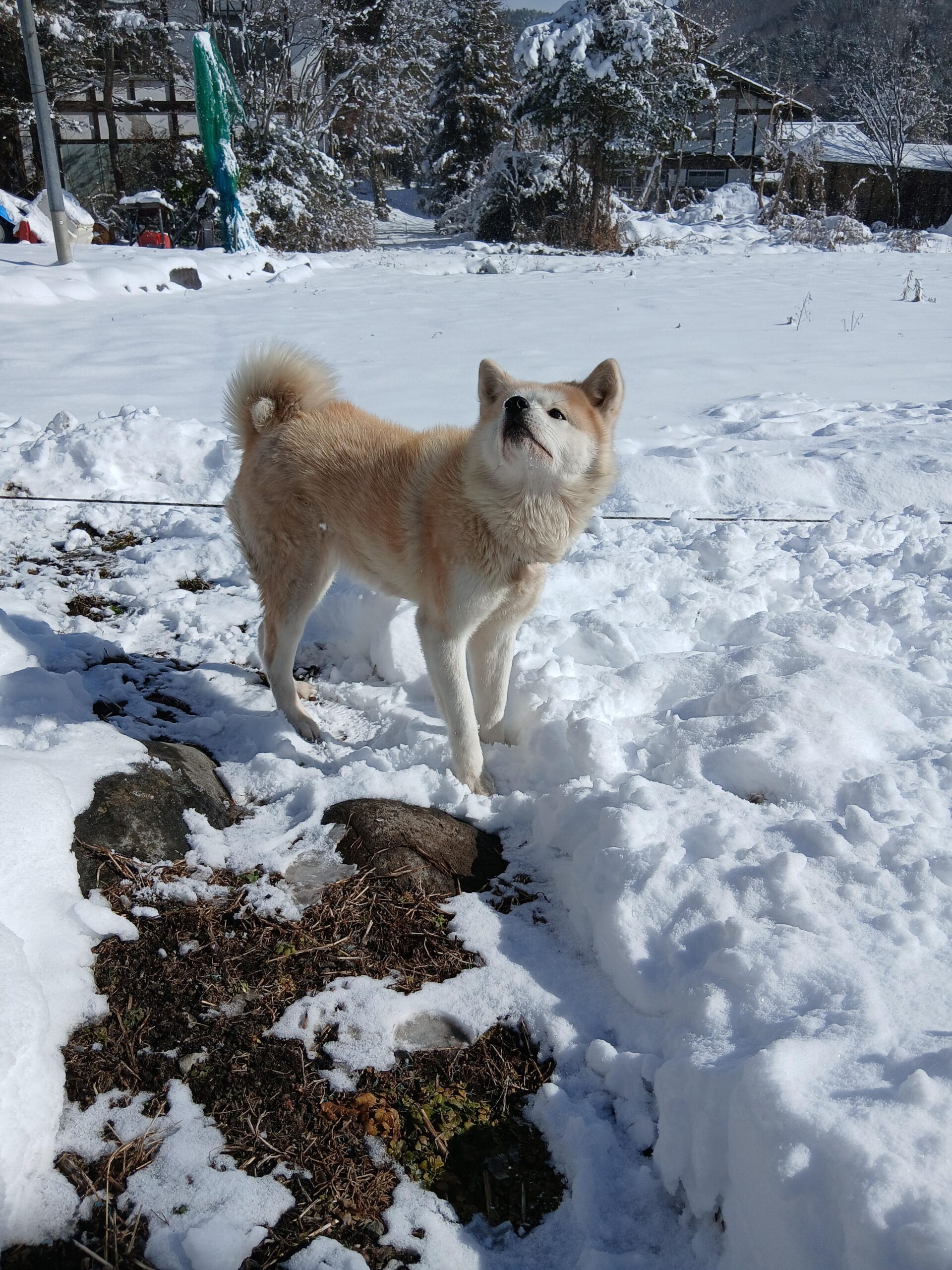 今朝から積雪10センチ サランは大はしゃぎ