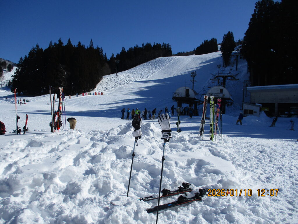 今日10日朝から快晴だったのでゆっくり家を出て湯沢パークスキー場へ行ってきました。11時ころ到着し車内で簡単に昼食(カップラーメン)を済ませた後12時からのシニア午後券2500円なりを購入して1時間半ずっと滑って2時駐車場を後にしました。天気よくて最高でした。